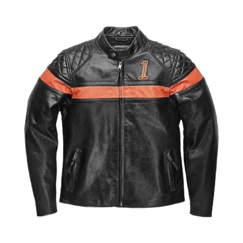 Harley Davidson Mens Orange Stripe Classic Cruiser Winged Leather Jacket