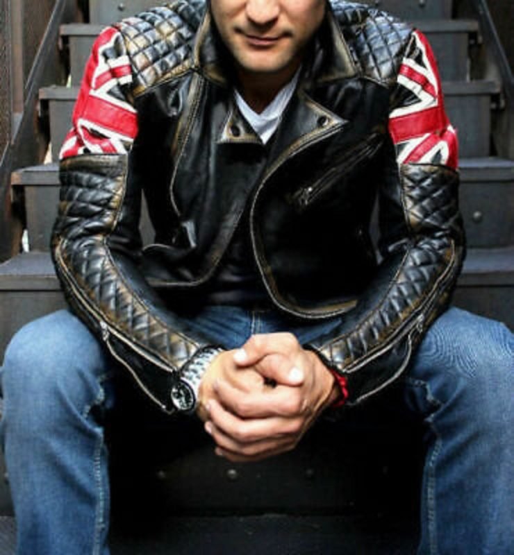 MOTERO Men’s UK Flag Double Breast Distressed CE Armoured Biker Leather Jacket