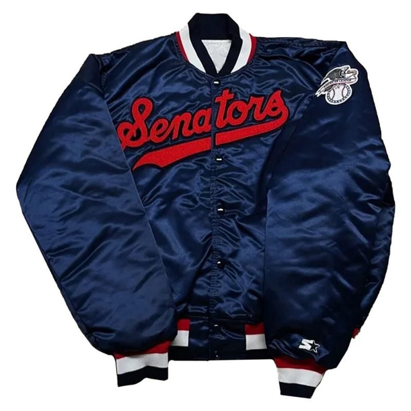 Washington Senators 90’s Satin Jacket – Retro Blue Full-Snap Varsity