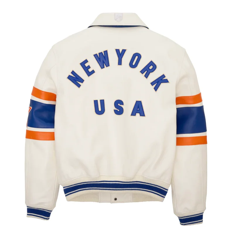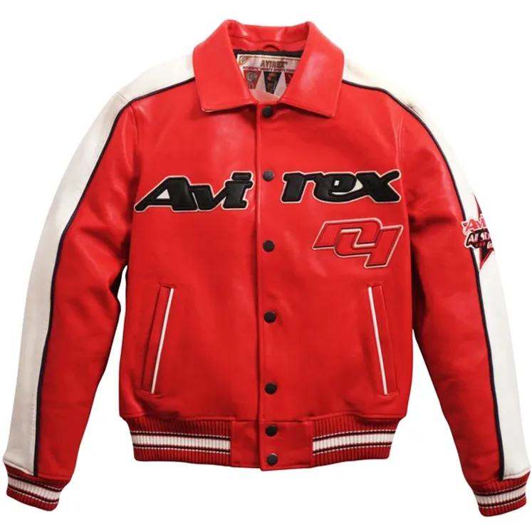 The Avirex All-Star Leather Jackets collection combines classic American craftsmanship with a fresh, modern edge. Made from 100% premium sheepskin leather, each jacket gets softer and gains more character over time. Featuring New York-inspired art patches, bold striped ribbed details, and a timeless bomber silhouette, these jackets are designed to stand out. They’re also designed for comfort, featuring printed inner linings, sturdy front zippers, and side pockets for everyday wear. The ribbed collar, cuffs, and waistband add vintage style, while options like custom patches and embroidery let you make it your own. Ready to upgrade your wardrobe? Buy now or explore our Avirex Leather Jackets collection and find the perfect fit for confident, effortless style.