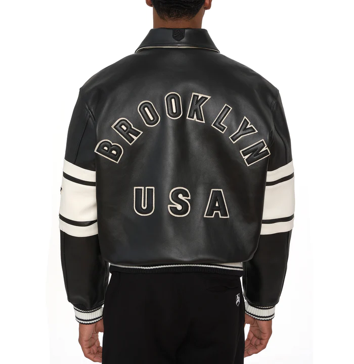 The Avirex Brooklyn Skyline Jacket is stylish, comfortable, and durable due to genuine leather manufacturing. If you are a fashion lover and trendsetter who want to stand out, this item is must have for your collection. The bold Brooklyn skyline embroidery on the back makes it unique while the ribbed collar and cuffs ensure a snug fit. Its soft interior lining keeps you warm, making it great for any season. Get yours today and upgrade your style!