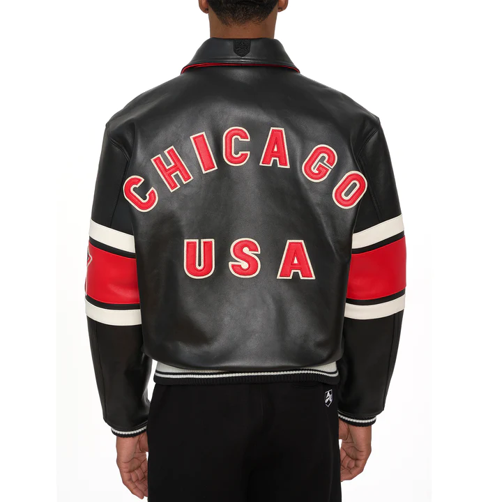 The Limited Edition of Avirex Chicago Jacket is the perfect mix of classic and modern styles. Made from high-quality leather that improves with time, it features bold Chicago-themed patches, wide stripes for a fresh look, and the signature design. With a jacket design, ribbed collar, and comfy cuffs, this jacket is built for style and comfort. The soft leather gives you a great fit while keeping you warm, and comfortable in the cold season. If you love fashion with a touch of history and personality, this Chicago jacket is for you. Order now, get on the Limited Edition Avirex leather jacket today, and confidently show off your style!
