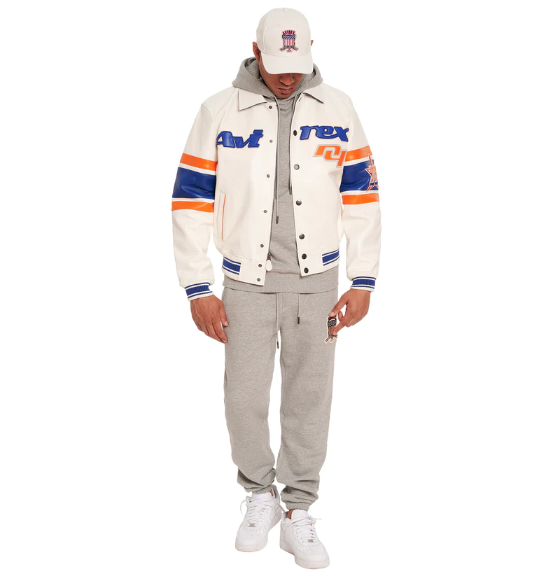 Step into bold energy with the Limited Edition City Series of New York Jacket! Made from genuine leather that gets even better with time It features New York-inspired patches, bold stripes, a ribbed collar and cuffs for a comfortable fit. Built with care and quality, it’s designed to last, keeping you warm while feeling soft and flexible. You can use it for any occasion, whether you’re out for the day or heading somewhere special at night. Don’t miss out on this limited-edition Avirex New York Leather Jacket, grab yours today and enjoy the perfect mix of style, comfort, confidence and city spirit to any outfit!