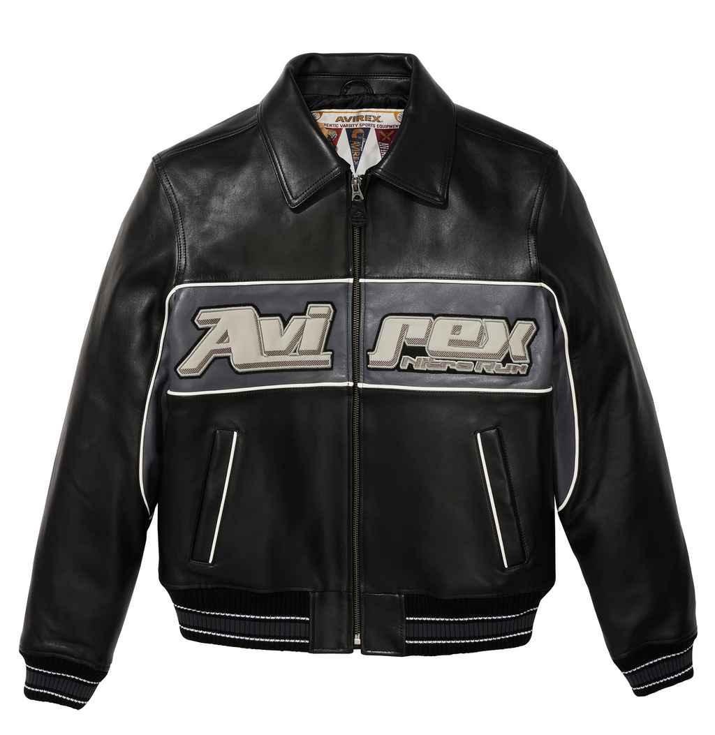Elevate your style with the Avirex Nitro Run Jet Black Leather Jacket. This jacket has a bold statement while offering unmatched comfort and protection. Expertly made by our master artisans, this jacket features genuine lambskin leather, a tailored fit, ribbed cuffs, a zippered front, bold graphics and multiple pockets, so it’s a true Avirex classic.