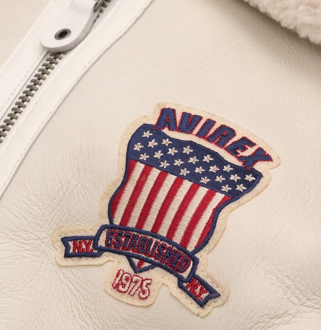 The Avirex white jacket is made from genuine leather with a soft shearling lining for added warmth and comfort.