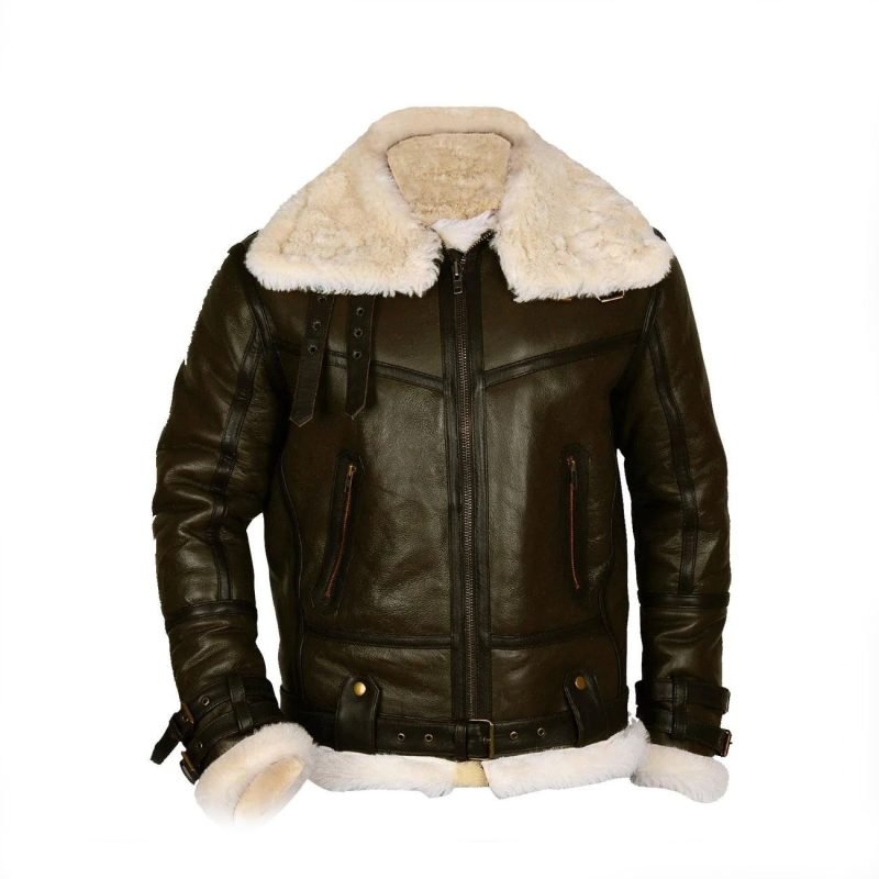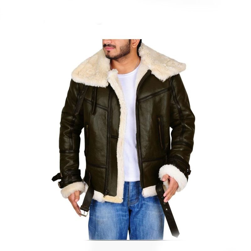 B3 Men’s Bomber Jacket Real Sheepskin Aviator Shearling Leather
