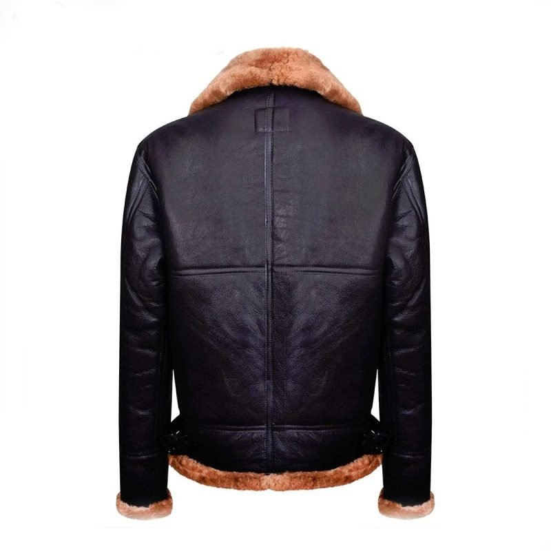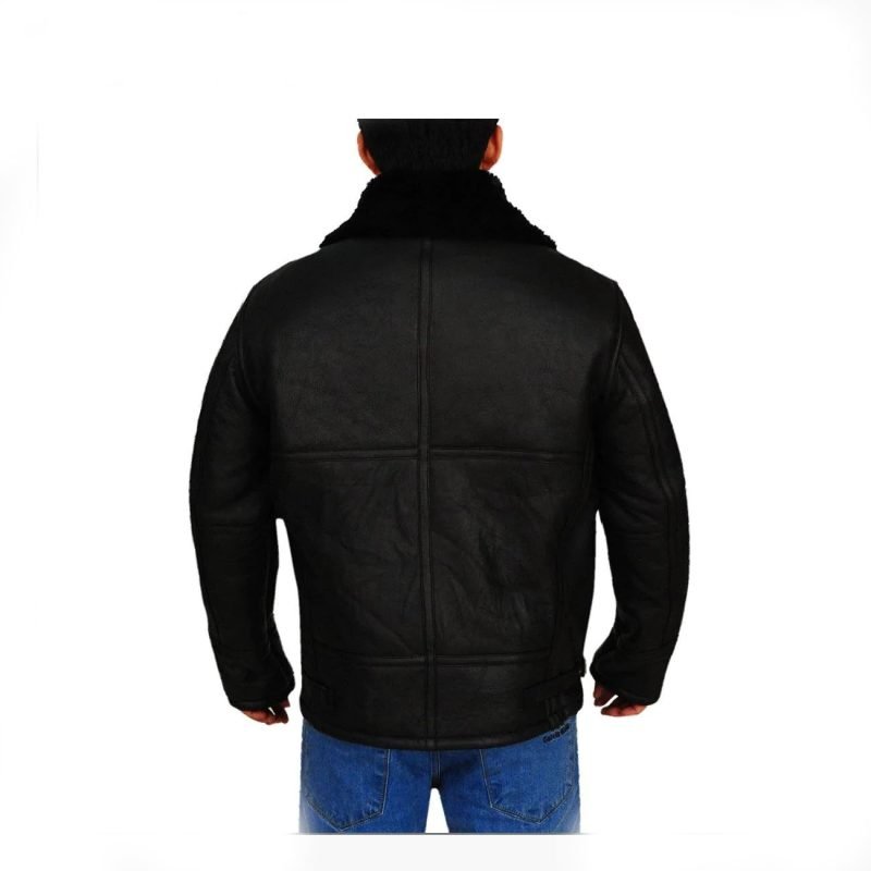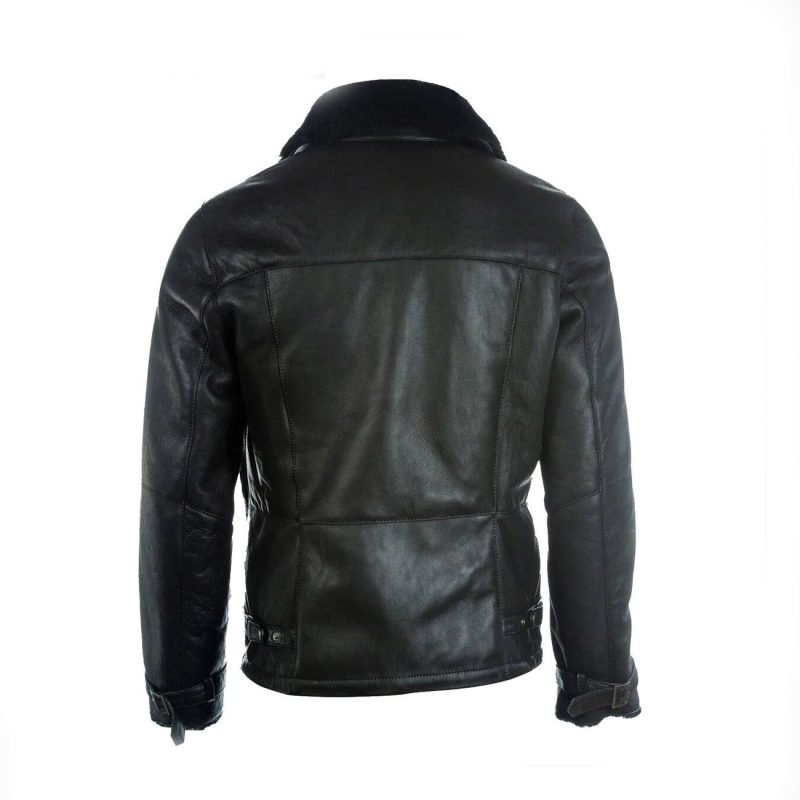 B3 Winter Leather Coat Mens Genuine Cow Skin Real Fur Shearling Black Leather
