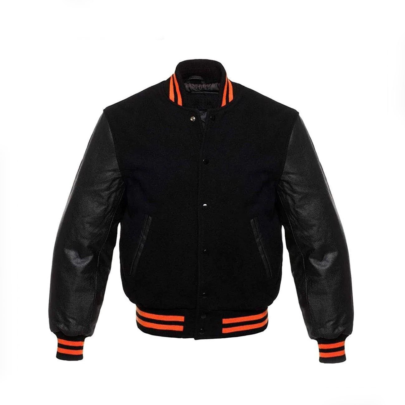 The Letterman Varsity Jacket in Black and Red lines combines style and comfort with a perfect blend of wool and real leather. Its classic varsity design features bold red accents, adding a modern twist to a traditional look. The wool body provides warmth, while the genuine leather sleeves offer durability and a sleek finish. Whether you’re hitting the field or going out with friends, this jacket ensures you stand out with its effortlessly cool aesthetic.