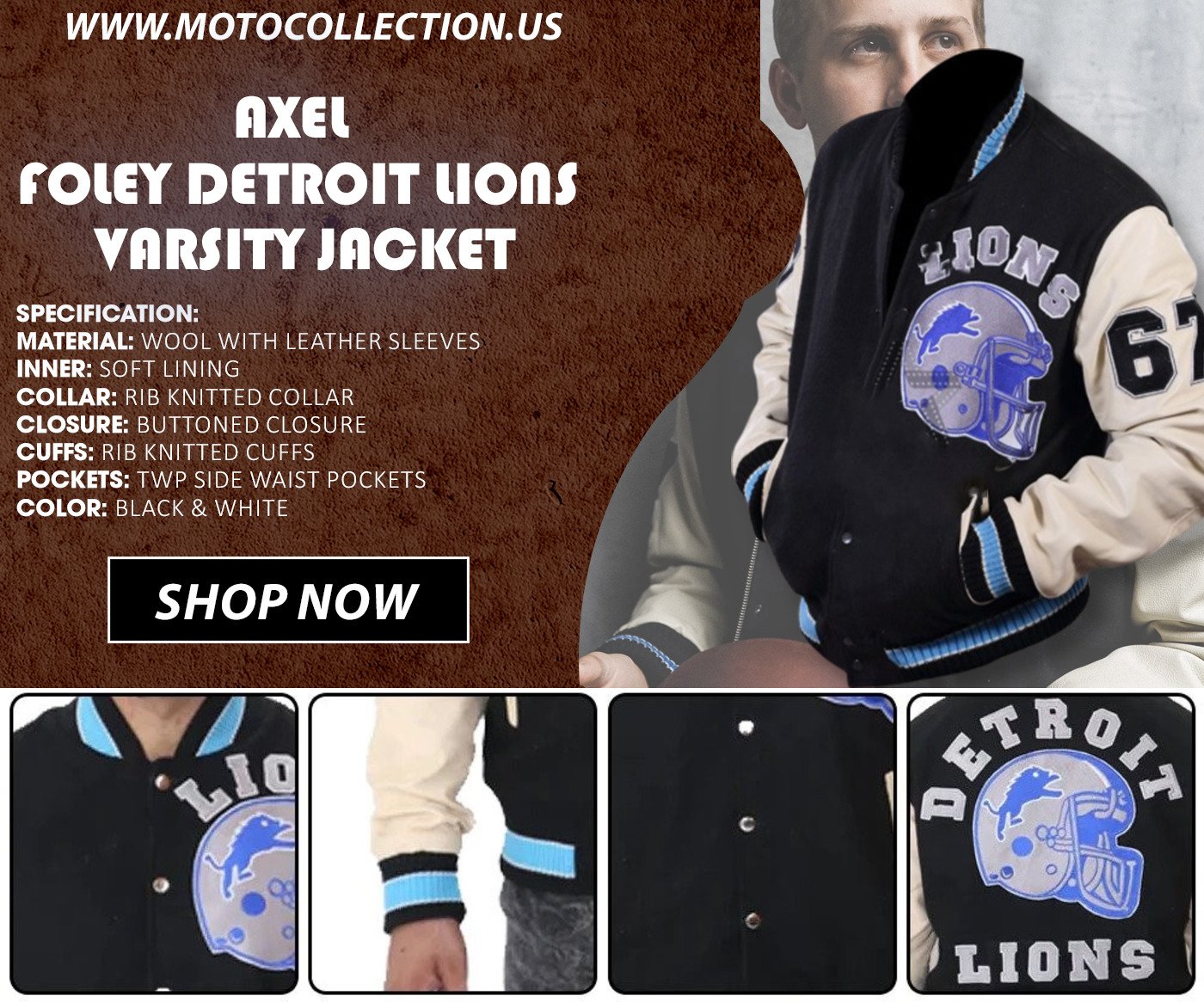 Step into the spotlight with the Beverly Hills Cop Axel Foley Detroit Lions Letterman Biker Jacket. Whether for fans of the iconic movie or lovers of bold fashion, this jacket is your ticket to timeless style— order now yours today!