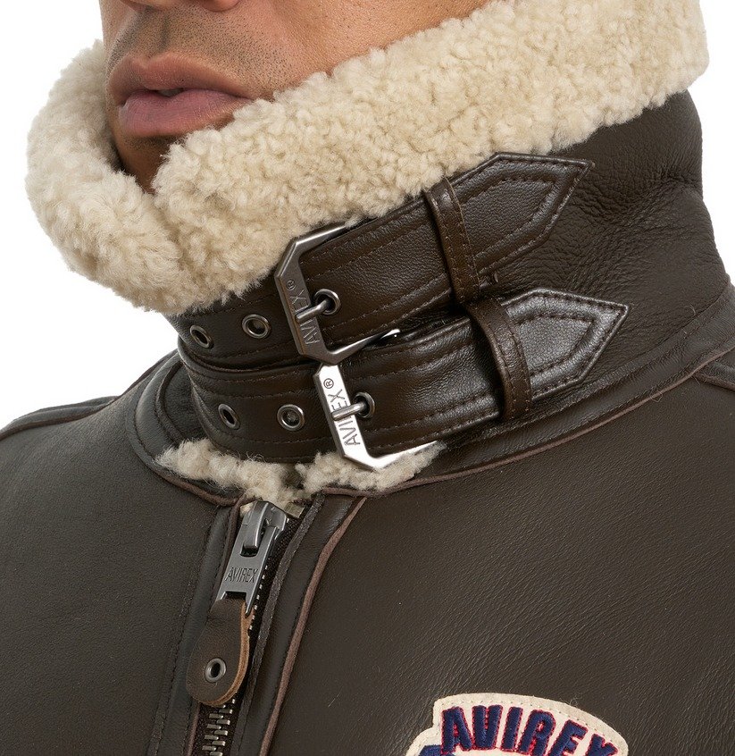 Avirex B3 Chocolate Shearling Leather Jacket for Winter
