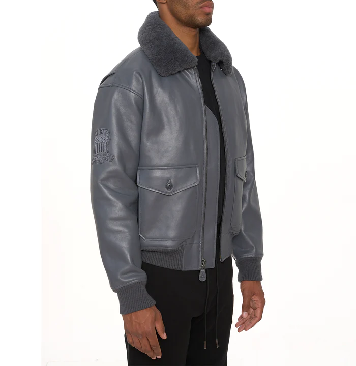 Avirex Classic Grey G-1 Aviator Leather Jacket