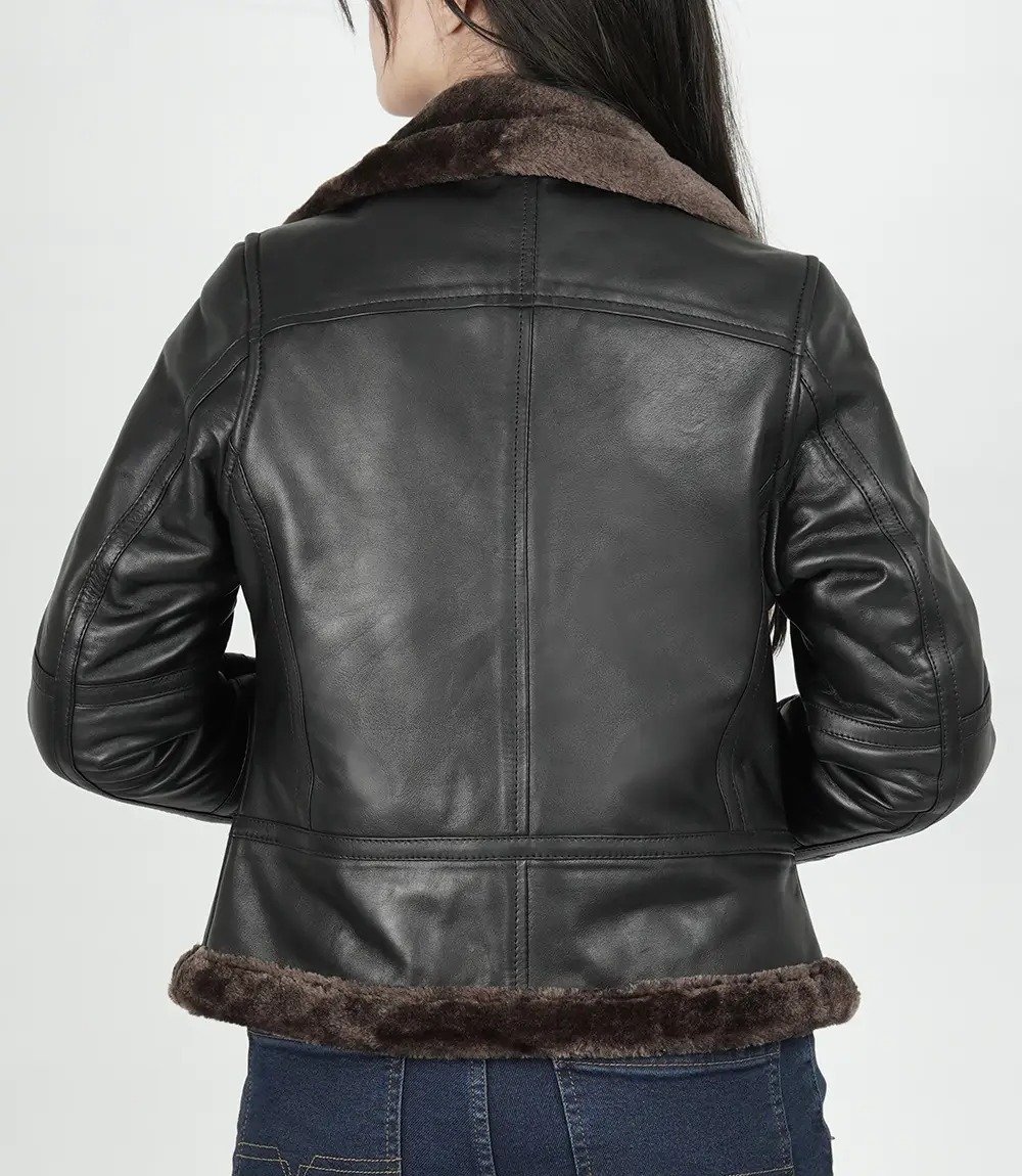 3 reviews for Classic Women’s Dark Brown Leather Bomber with Shearling