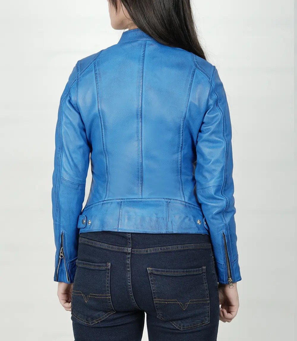 Dodge Women’s Sky Blue Leather Motorcycle Jacket
