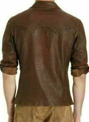 Men’s Chocolate Brown Slim Fit Biker Leather Shirt