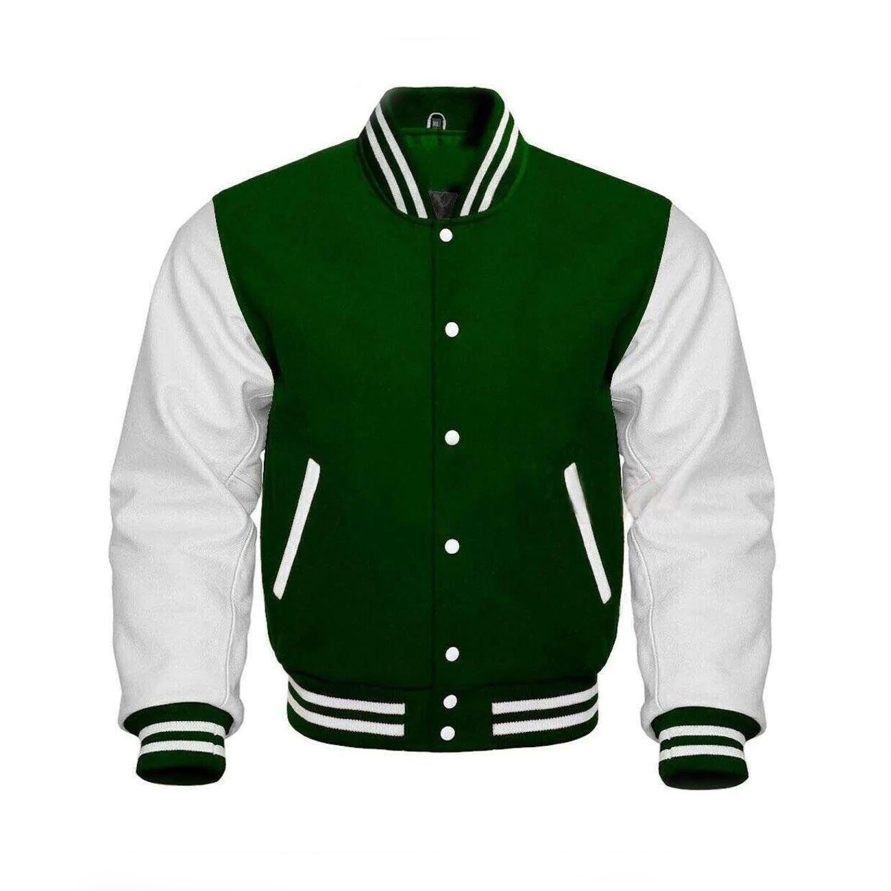 Green Letterman Wool & White Leather Varsity Jacket