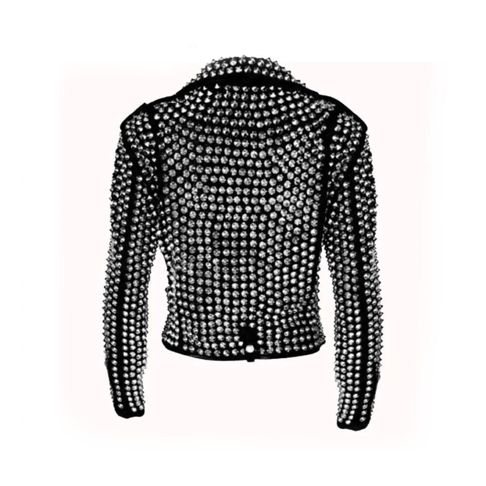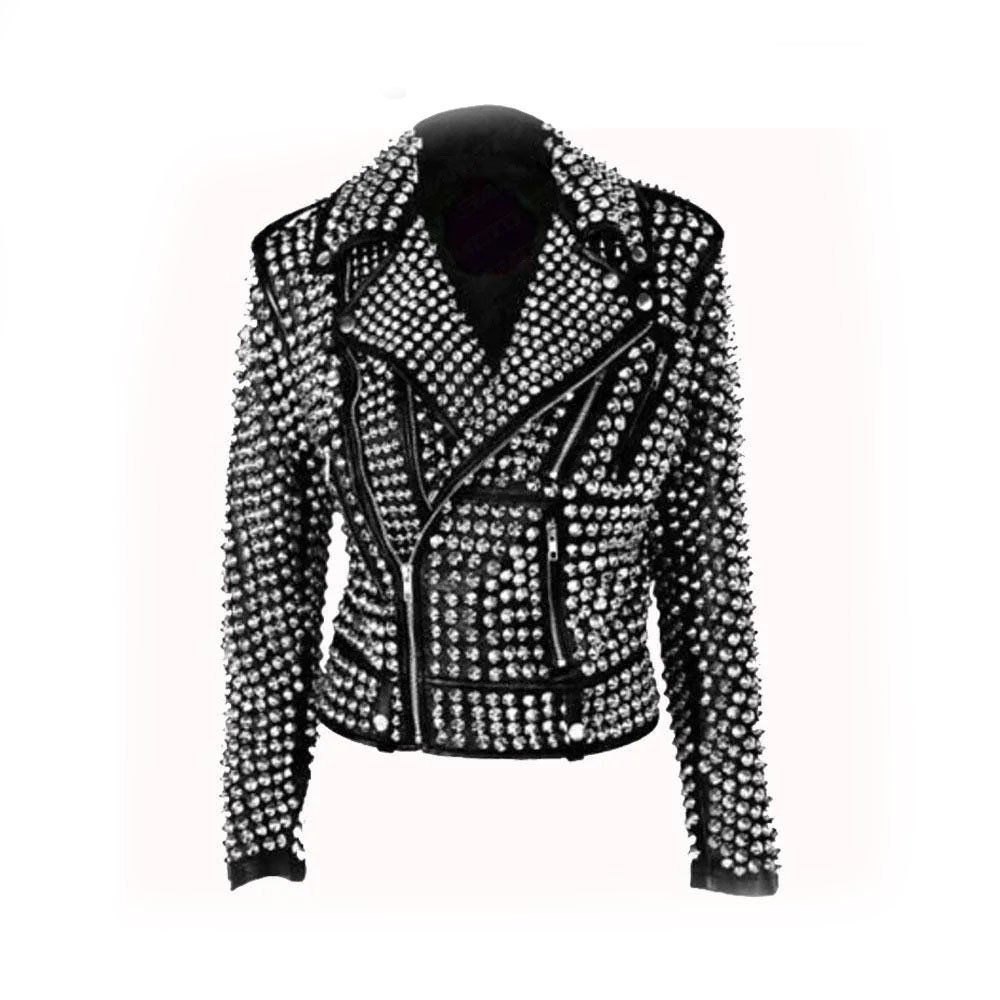 Handmade Women Black Fashion Studded Punk Style Leather Jacket