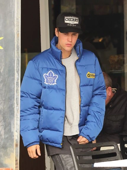 Justin Bieber London Fashion Week Blue Puffer Jacket