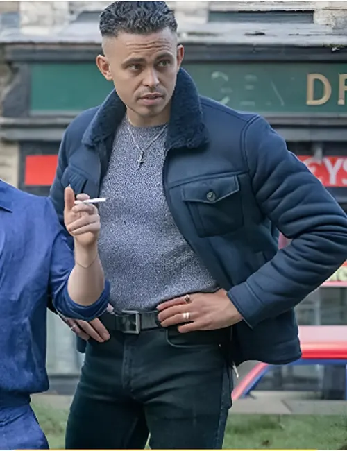 Aaron Heffernan Brassic S04 Blue Leather Jacket