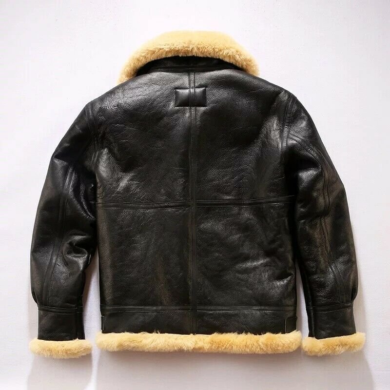 Men Aviator Pilot RAF B3 Flying Bomber Faux Fur Real Lambskin Leather Jacket M11