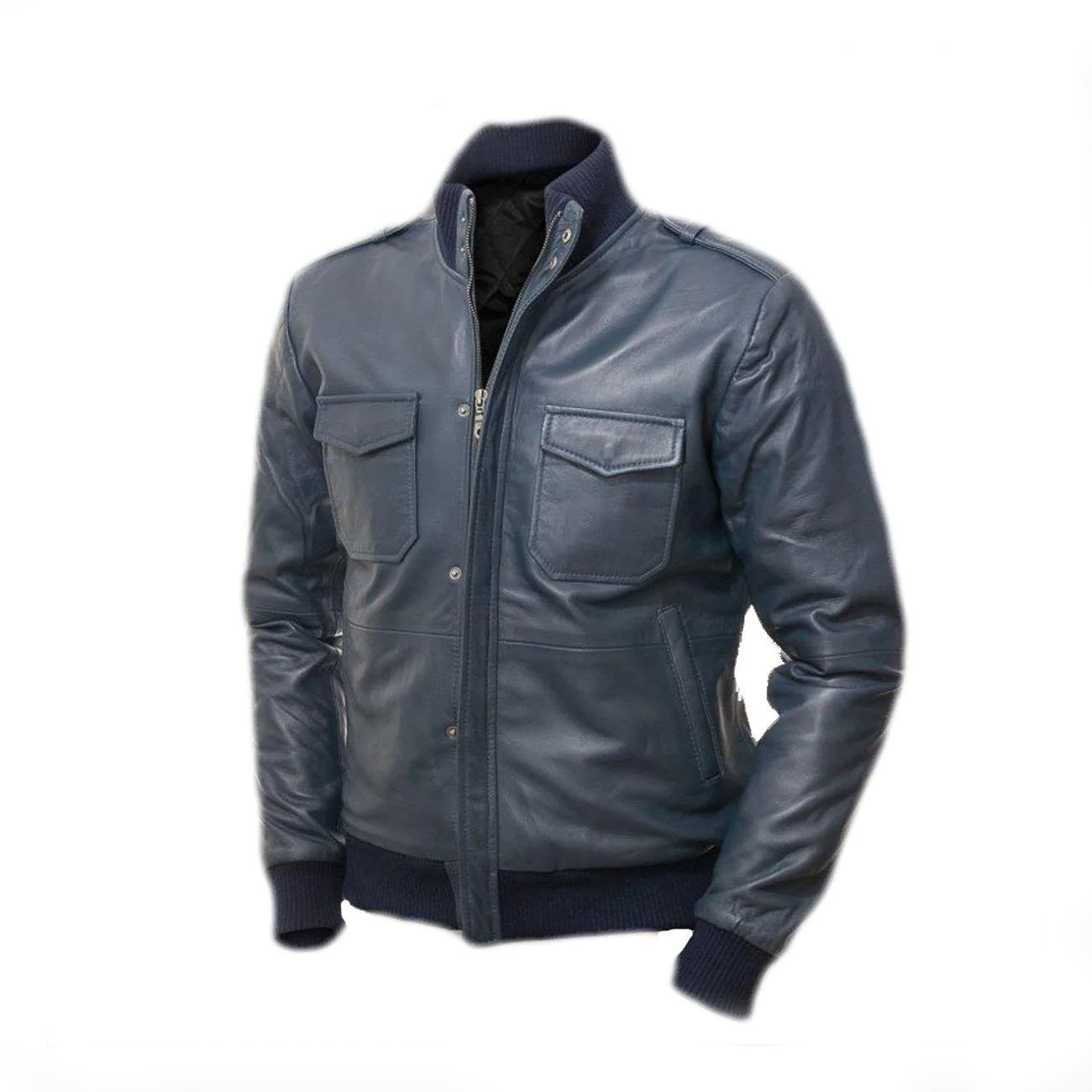Absolutely impressed with the quality and style of the Men’s Blue Bomber Leather Jacket.
