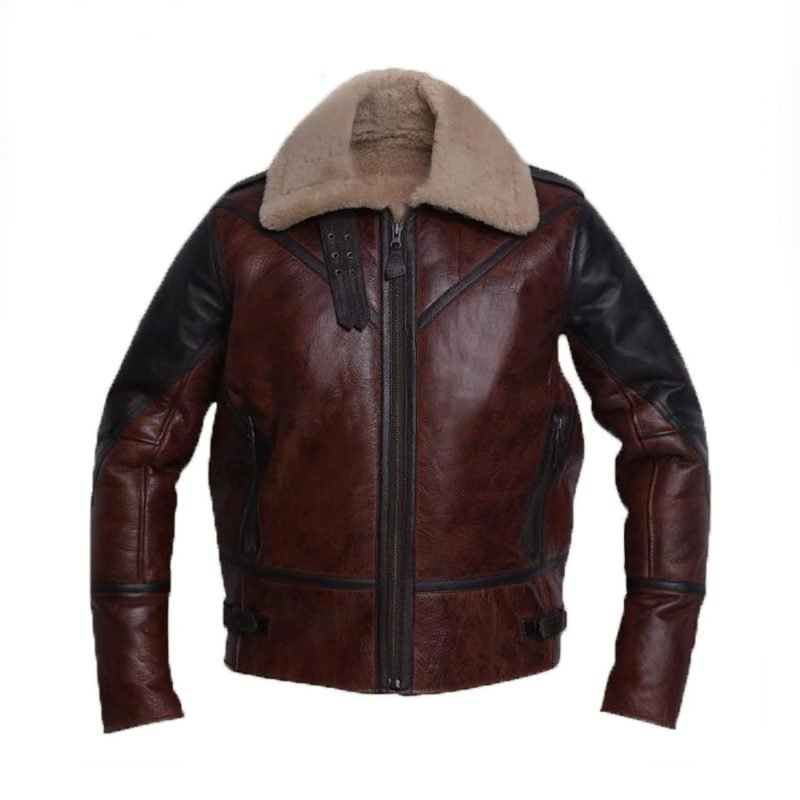 Men’s Aviator B3 Brown Shaded Sheepskin Fur Leather Bomber Flying Jacket