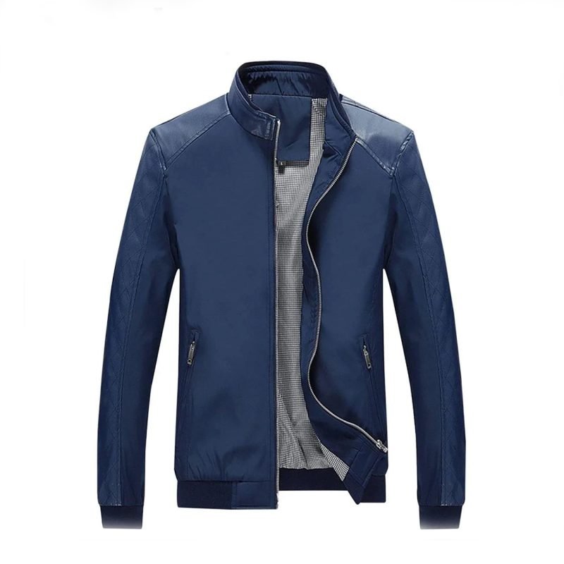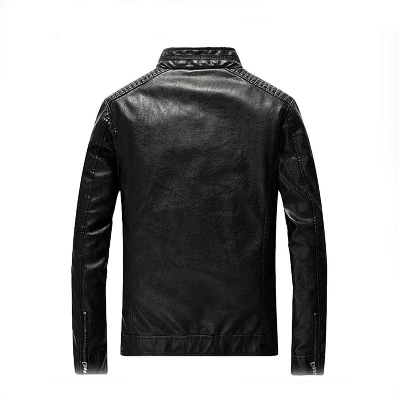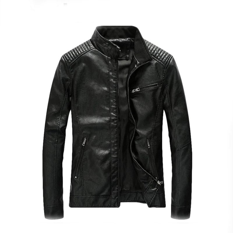 Men’s Casual Stand Collar Slim PU Leather Bomber Jacket