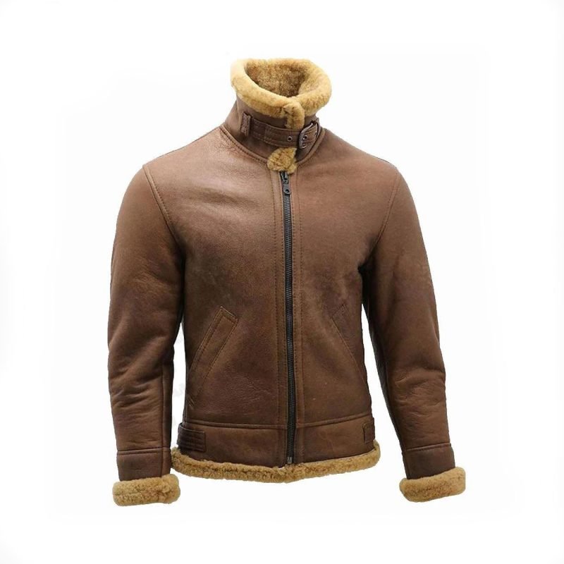Men’s Brown Vintage Pilot B3 Sheepskin Flying Leather Jacket