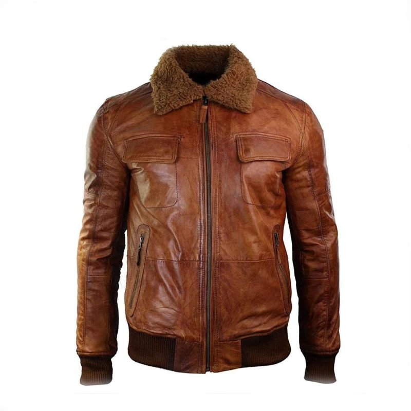 Mens B3 Bomber Rust Tan Brown Removable Fur Collar