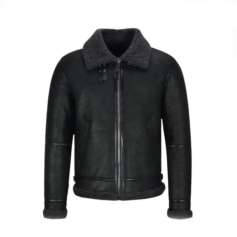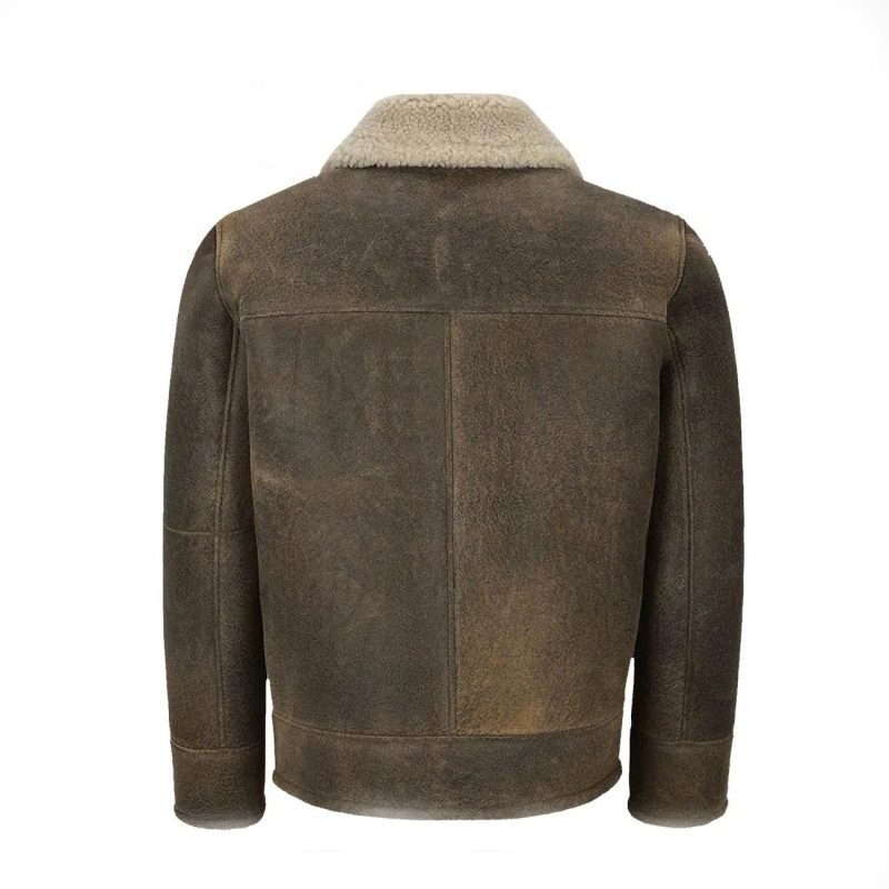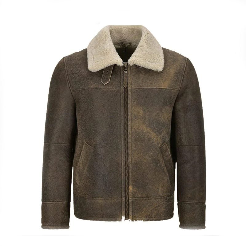 Men’s Sheepskin Leather Jacket Dirty Beige Fur Flying RAF