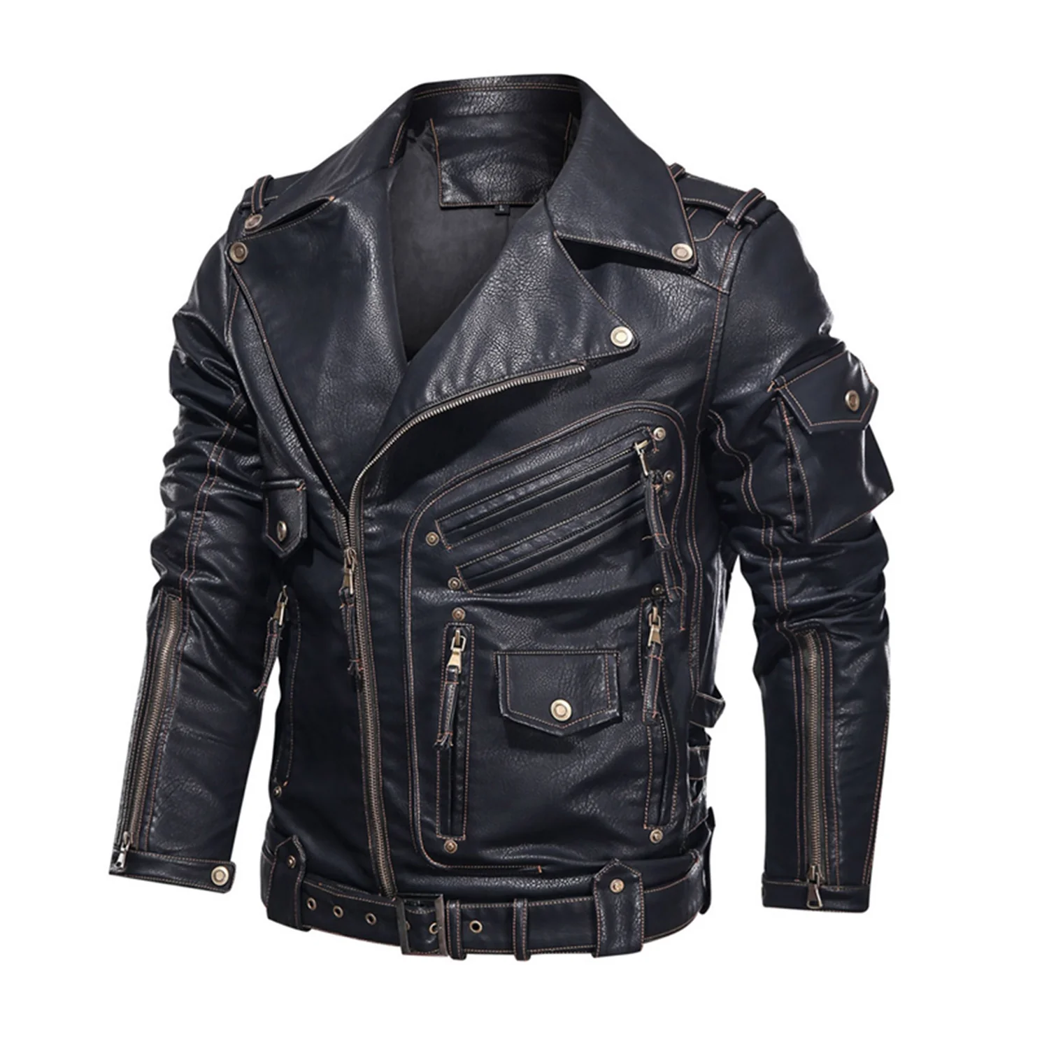 Mens Retro Leather Jacket Motorcycle Stand Collar Biker Coat Zip Up Outwear Top