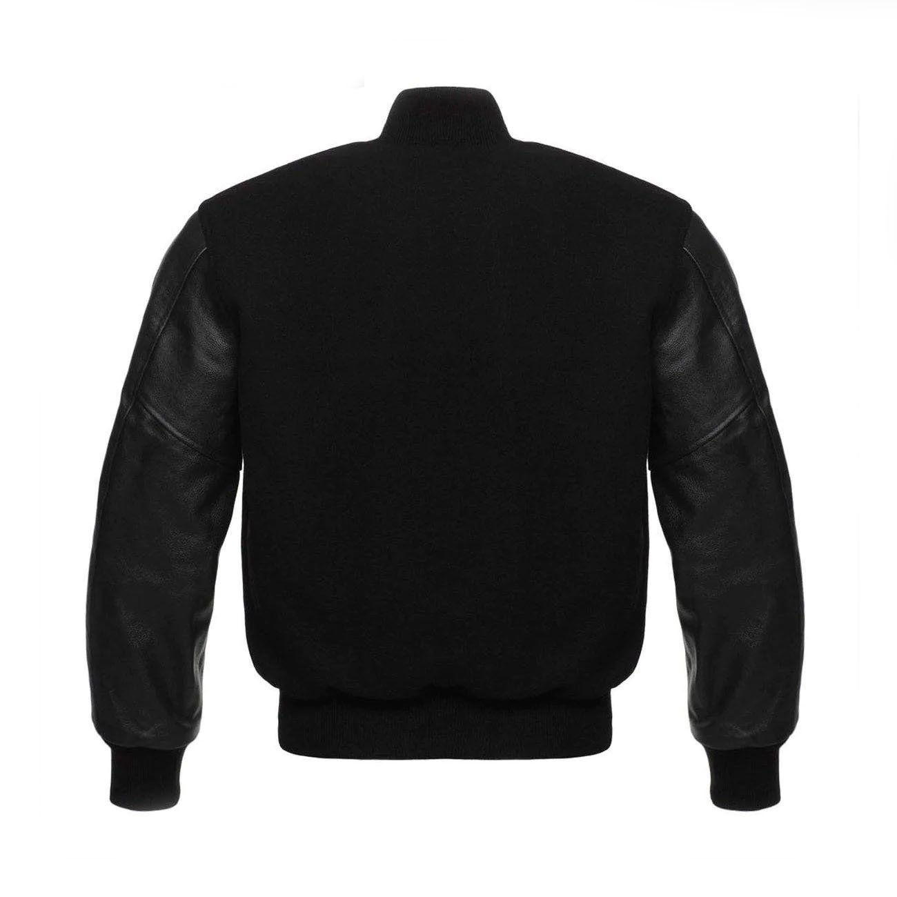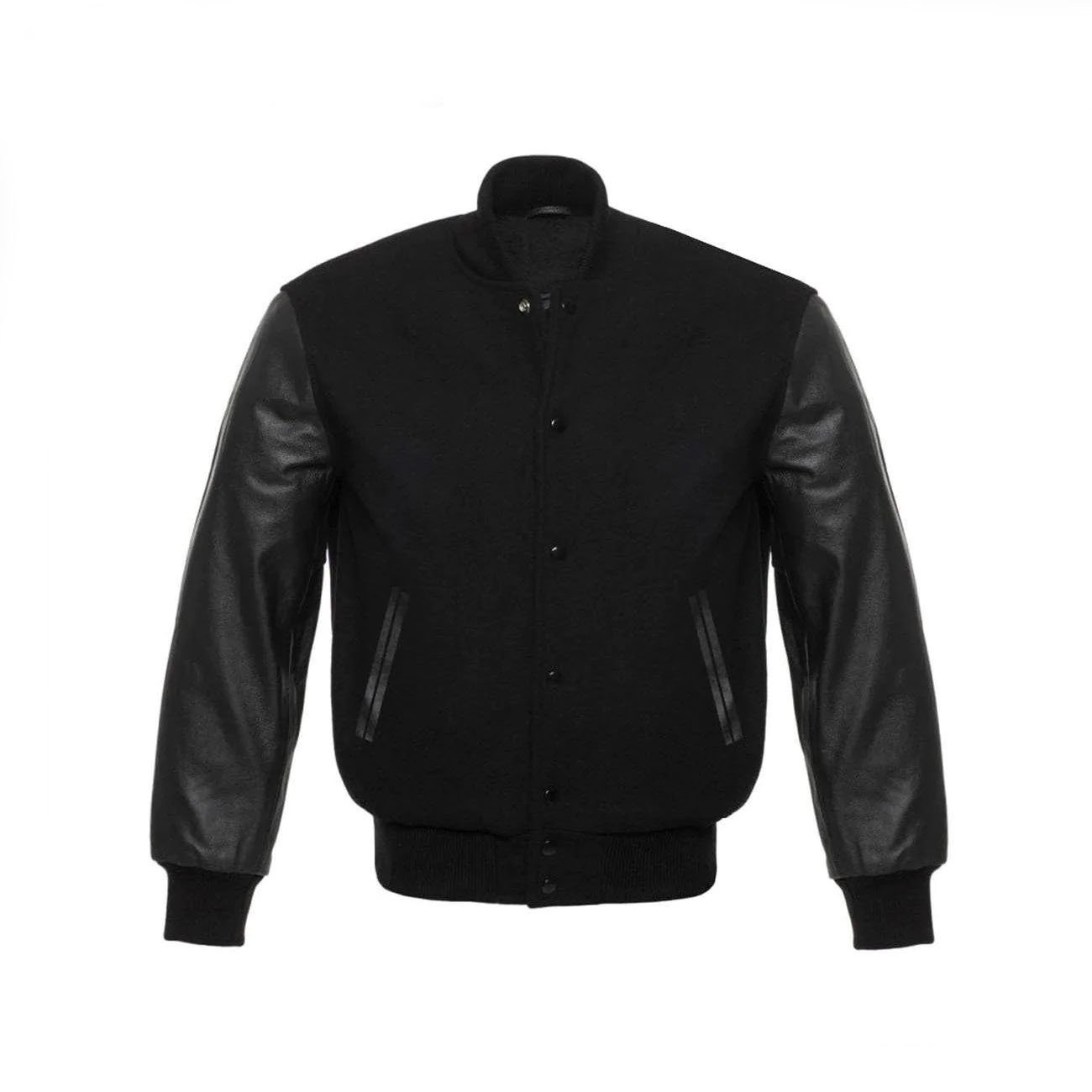Black Varsity Jacket is made of high-quality Melton Wool and Jacket Sleeves are made of high-quality Cowhide Leather. This varsity jacket comes with a black wool body, black leather sleeves and black rib.