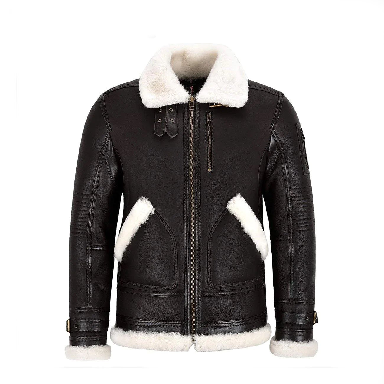 New Sheepskin B3 Leather Bomber Jacket Brown For Men