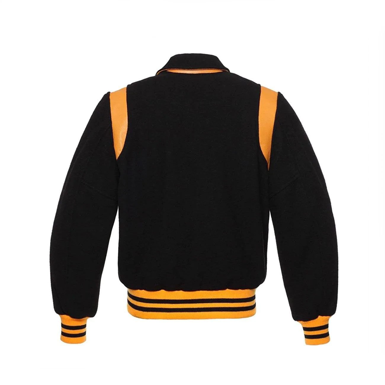 Upgrade your wardrobe with this sleek varsity jacket! Its premium materials and stylish design make it a must-have for fashion-forward individuals. Whether paired with jeans or chinos, it elevates any outfit effortlessly. Don’t miss out— order Now your Black Wool Collar Varsity Jacket with Gold Leather Stripes today and make a lasting impression!