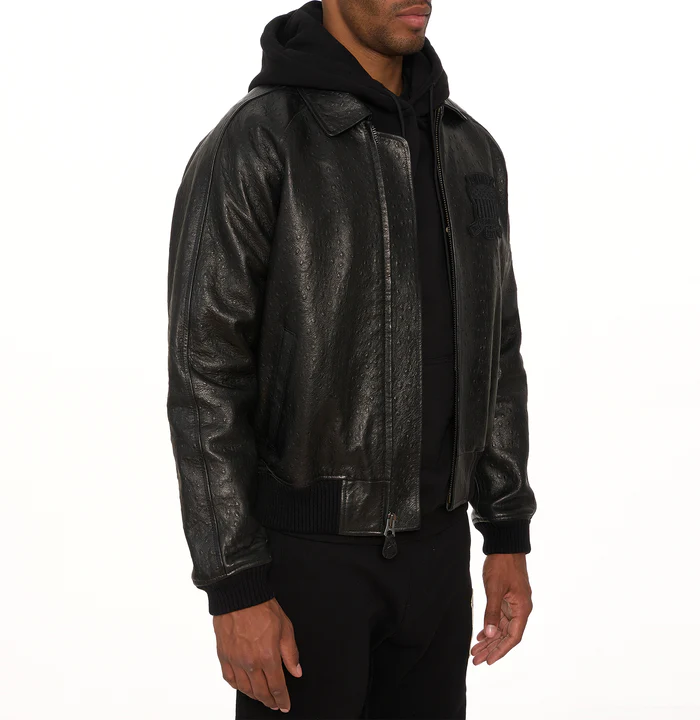 The Ostrich Icon Jacket is the epitome of luxury, sophistication, and individuality. Crafted from the finest ostrich leather, its unparalleled softness and unique texture set it apart from any other jacket. With meticulous craftsmanship, a timeless bomber silhouette, and limited availability, this jacket is a rare masterpiece designed for those who demand exclusivity and boldness. It’s not just a jacket; it’s a statement that exudes confidence and sophistication, making you stand out in any crowd.