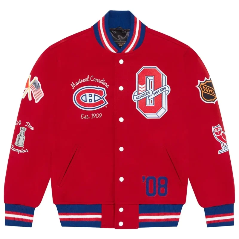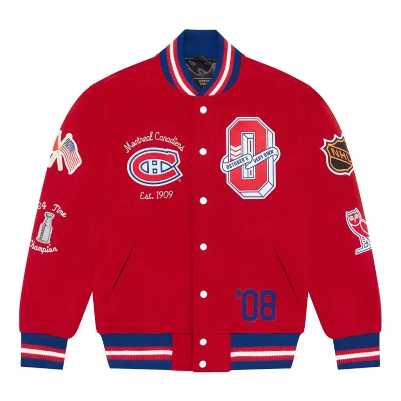 Montreal Canadiens OVO x NHL Red Full-Snap Varsity Jacket