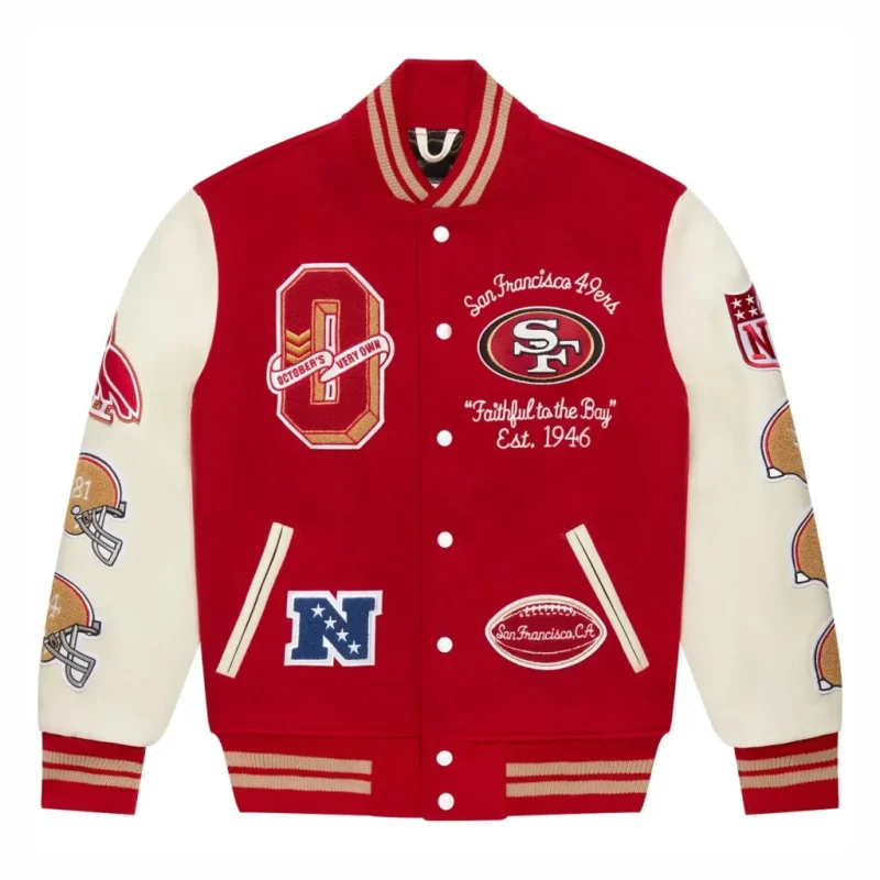 San Francisco 49ers OVO Scarlet Full-Snap Varsity Jacket