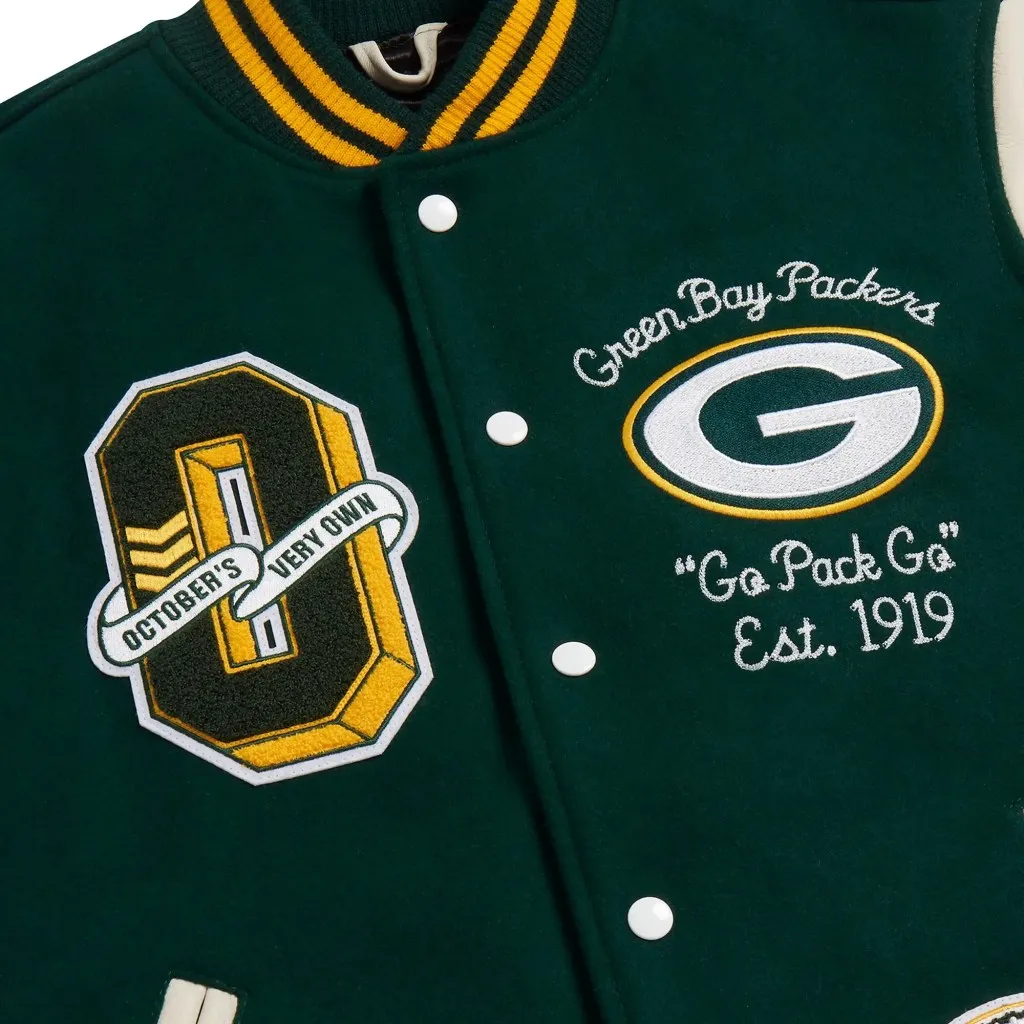 OVO x NFL Green Bay Packers Green Full-Snap Varsity Jacket