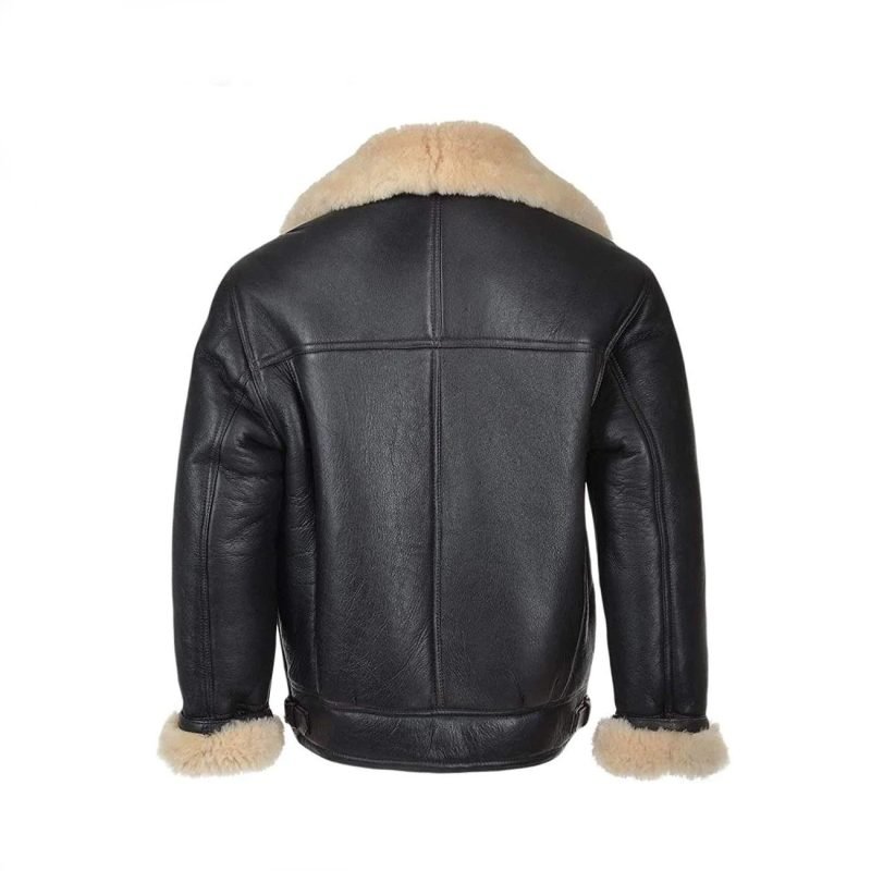 B3 Winter Leather Coat Mens Genuine Cow Skin Real Fur Shearling Black Leather