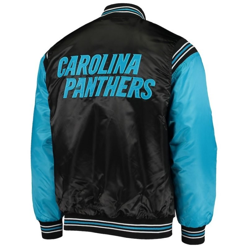 Carolina Panthers Men’s Black-Blue Enforcer Satin Varsity Full-Snap Jacket