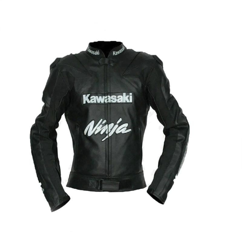 Kawasaki Black Racing Motorcycle Leather Jacket Ce Approved