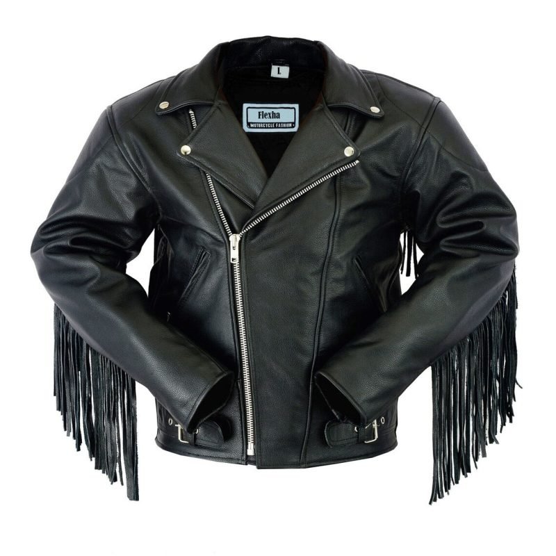 Men’s Leather Jacket With Tassels Fringe Motorbike Jacket Brando Cruiser Perfect