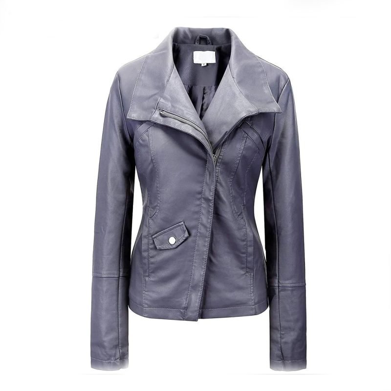 S06 Nia Nal Grey Biker Suede Women Leather Jacket