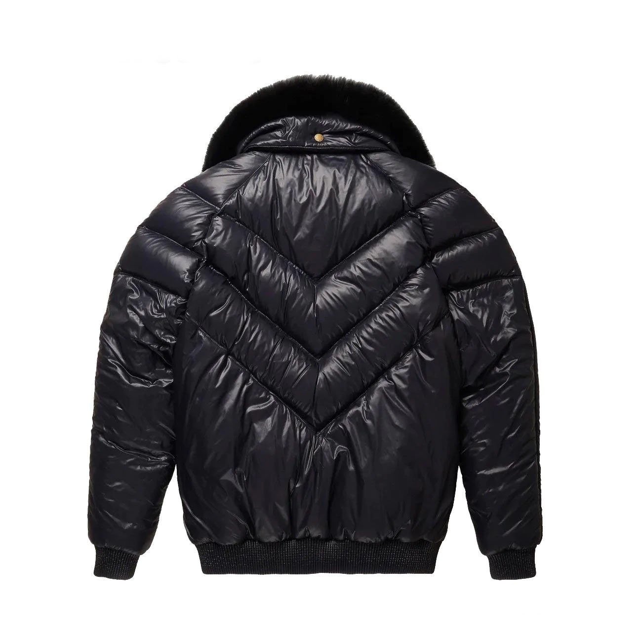 Real Quality V-Bomber Nylon Black Fox Fur leather jacket