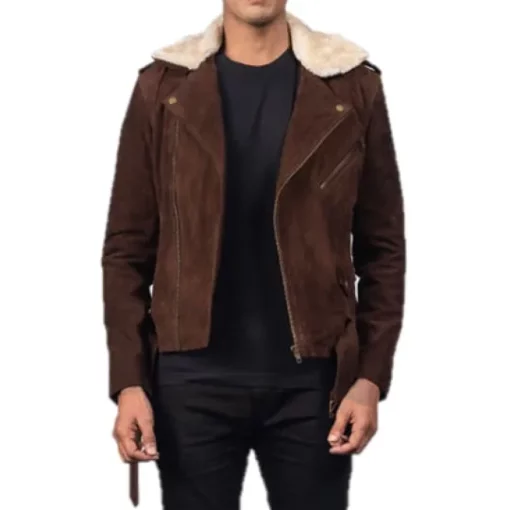 Kyle Brown Shearling Asymmetrical Zipper Suede Jacket