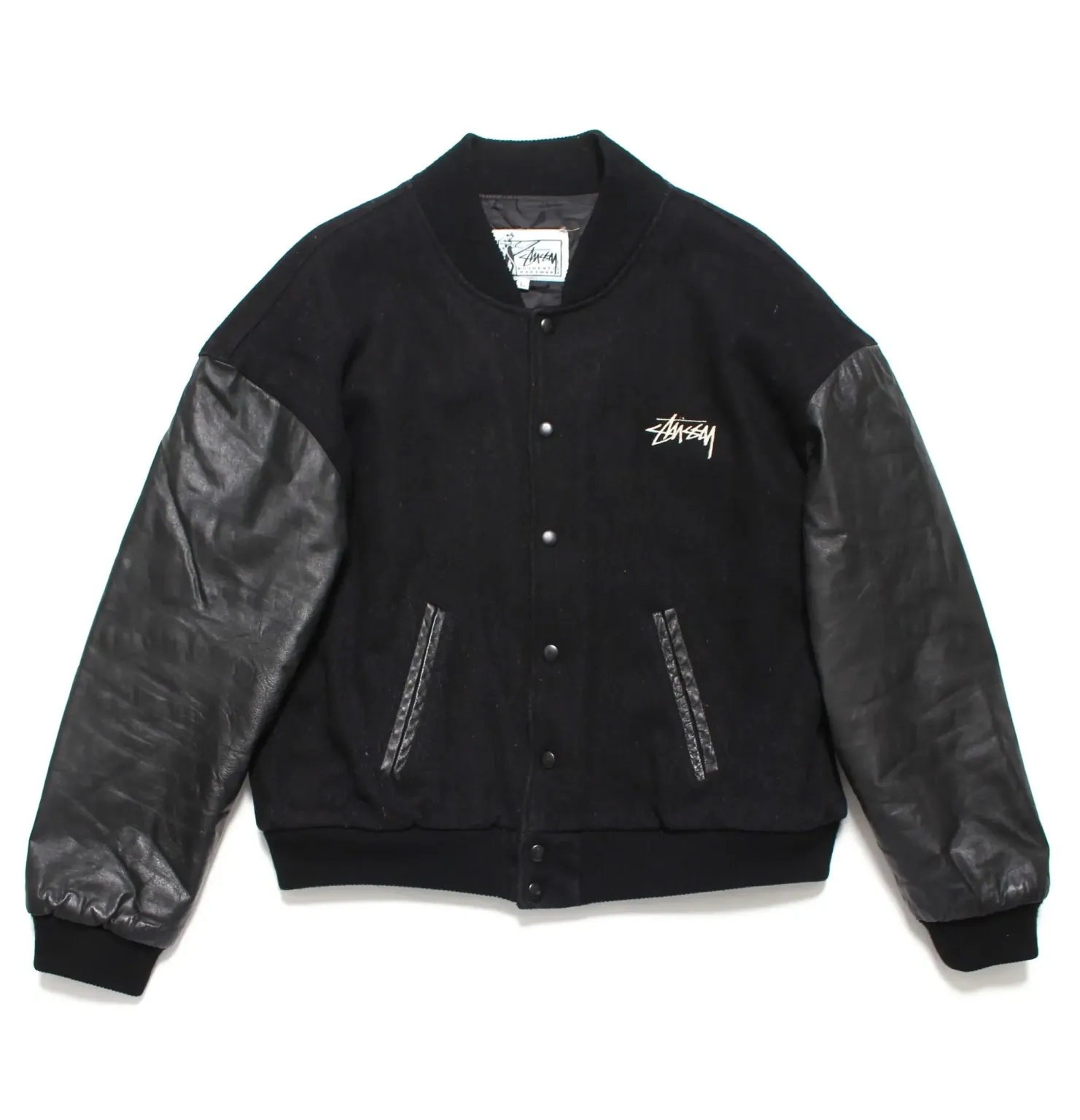 Home » Shop » Stussy Jackets » Stussy 1988 Vintage Homeboy Black Wool & Leather Varsity Jacket
