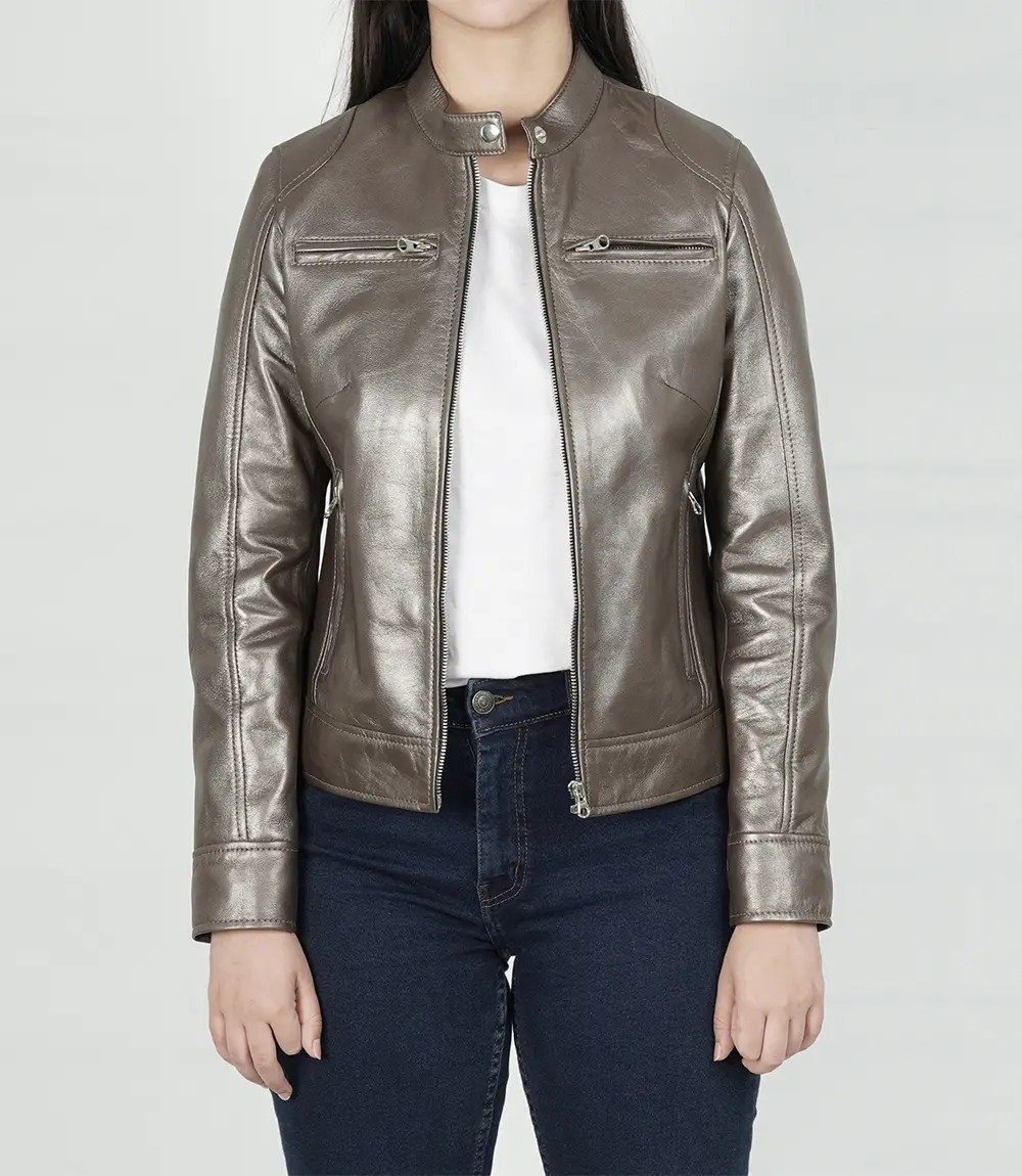 Stylish Dodge Bronze Women’s Leather Biker Jacket