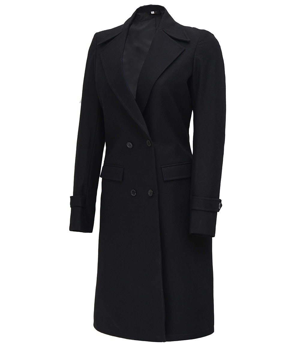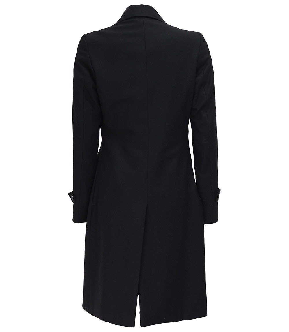 Stylish Women’s Black Wool Coat with Two Front Pockets