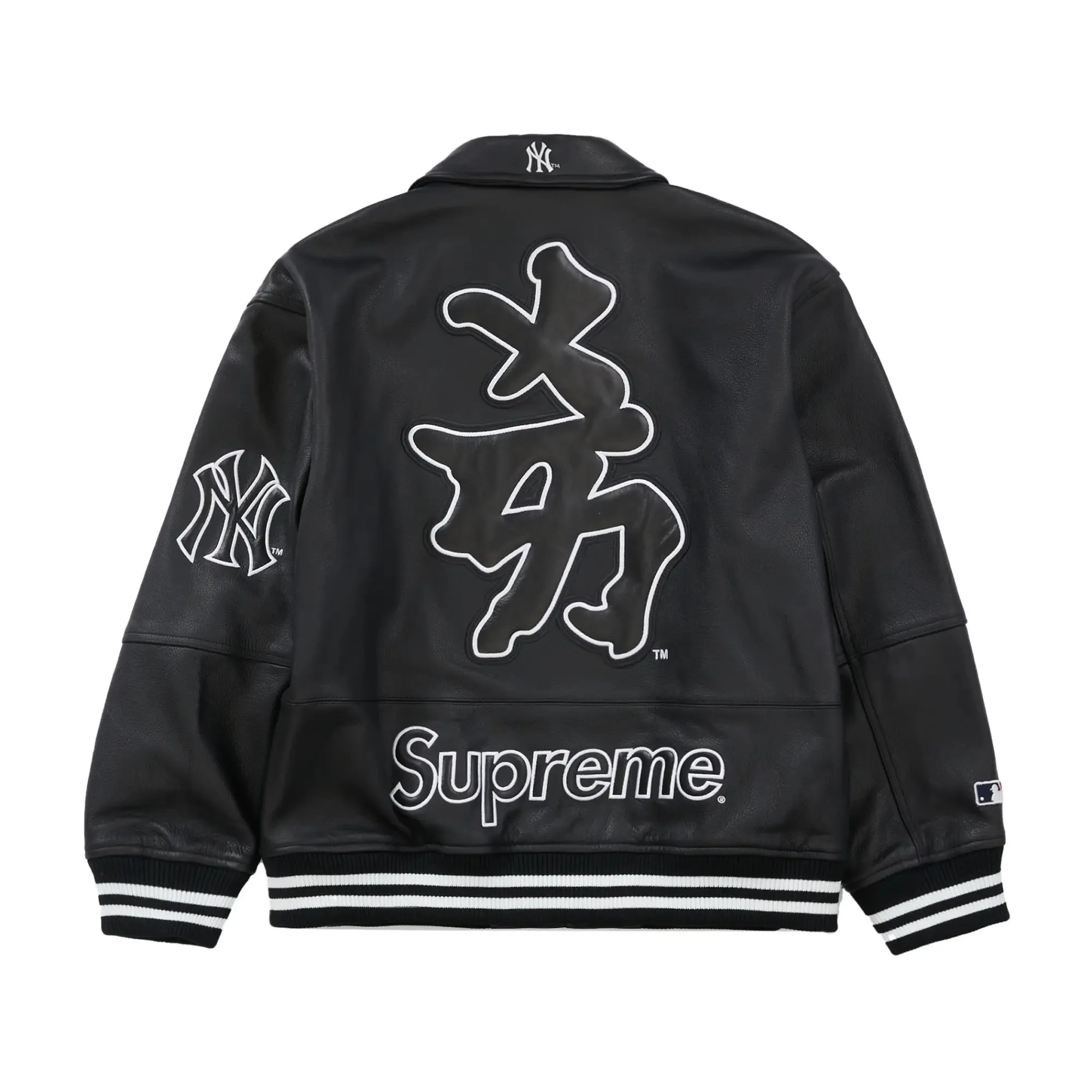 Supreme New York Yankees Kanji Black Leather Jacket