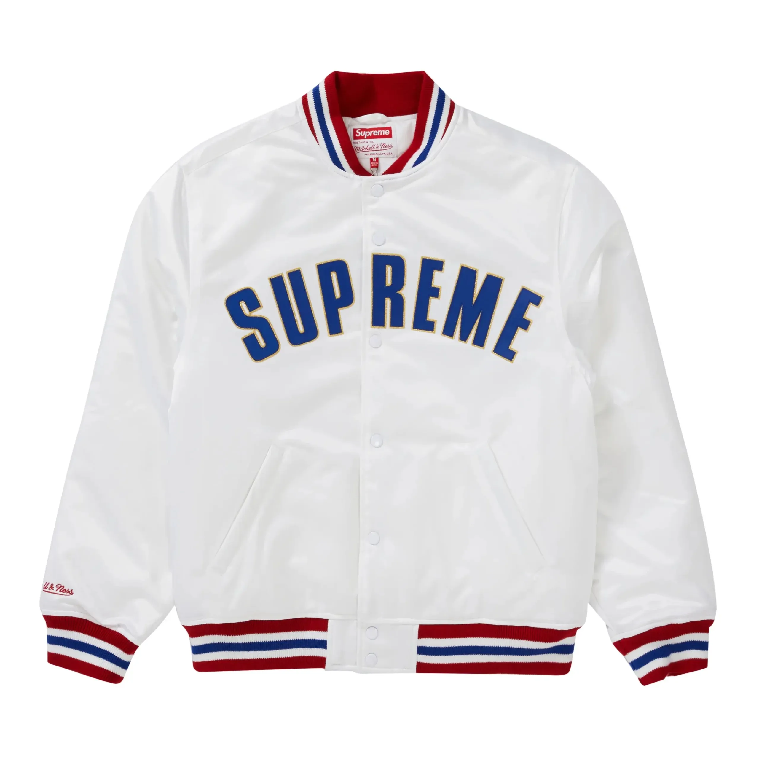 Supreme X Mitchell & Ness White Satin Varsity Jacket