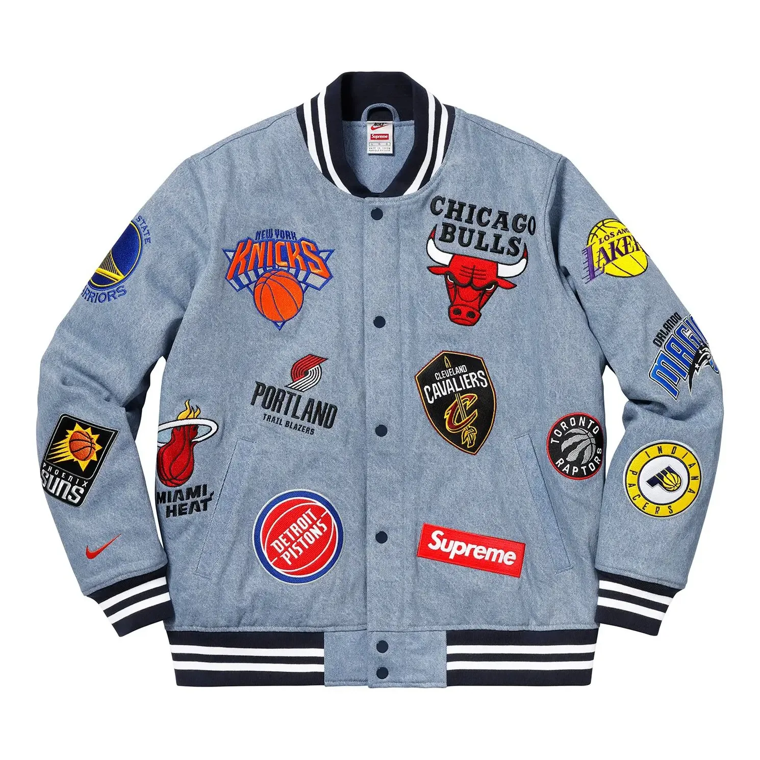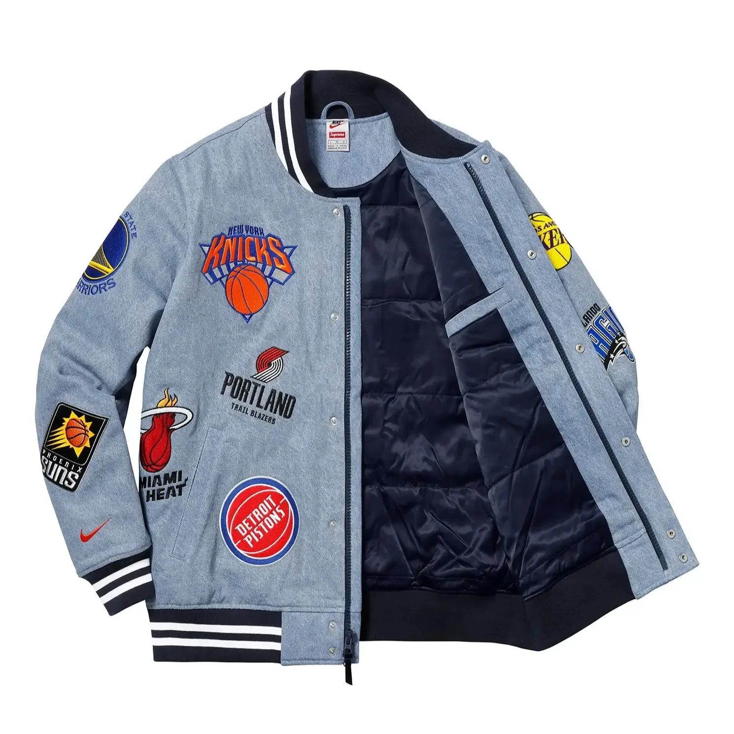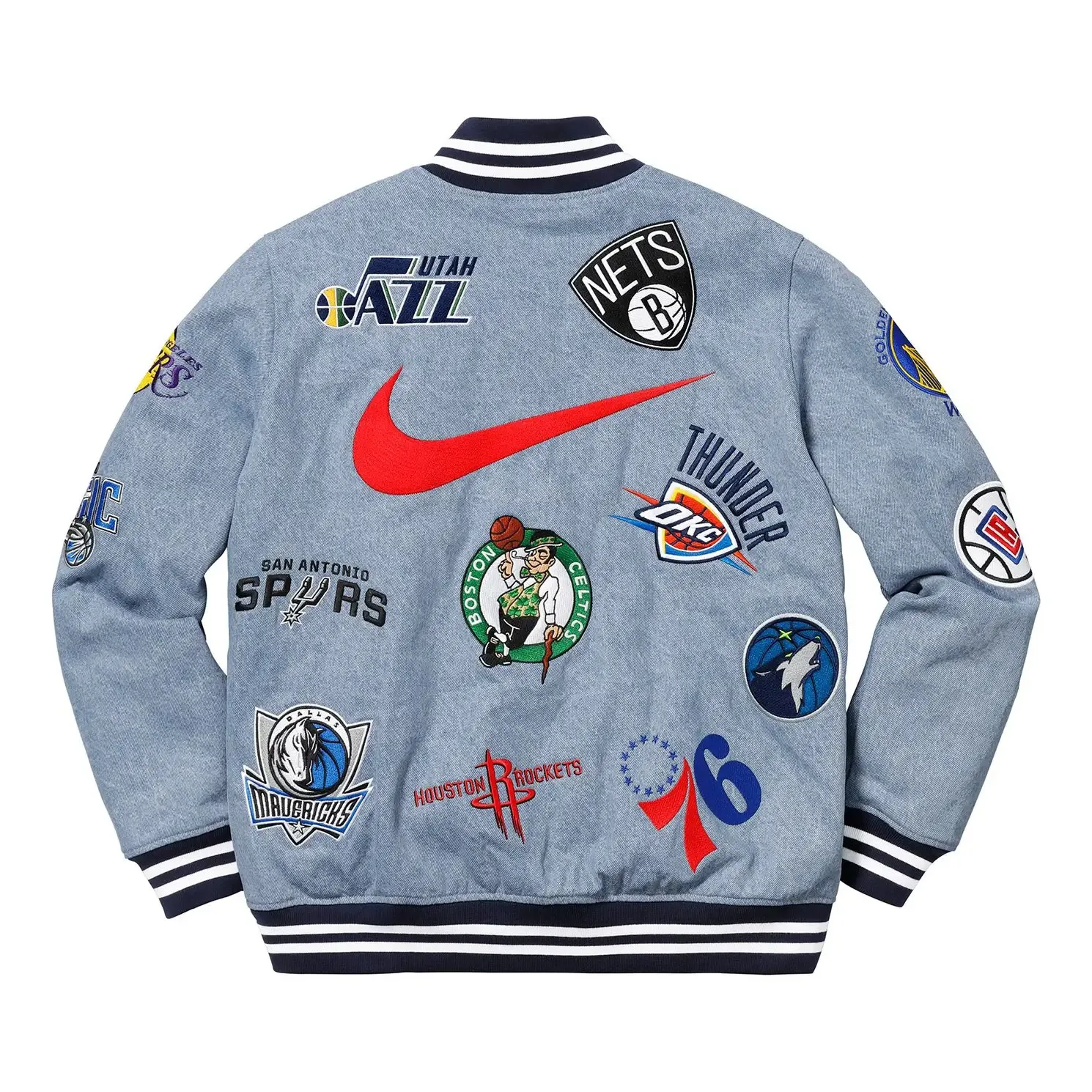 Supreme x Nike NBA Team-Inspired Blue Varsity Warm-Up Jacket